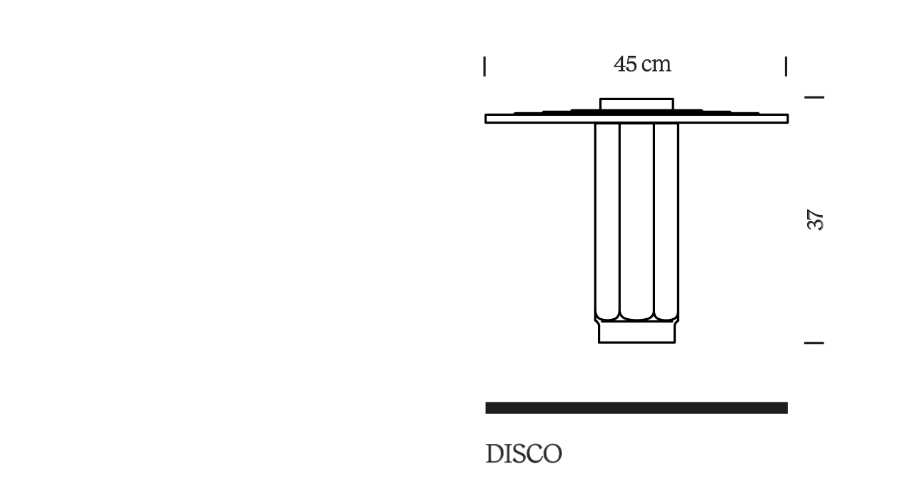 L’élément circulaire inséré au centre du disque évoque la figure du discobole, non comme une citation figurative, mais comme une référence au geste, à l’équilibre et à la notion de mouvement contenu. Le fût, volontairement sobre, agit comme un socle architectural qui stabilise la composition et met en valeur le travail des surfaces.